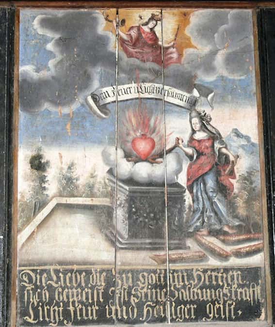Um die Bilder besser zu verstehen, sollte man etwas über die Kunstform Emblem Was ist ein Emblem und über Emblembücher des 16. bis 18. Jahrhunderts wissen Das erste Emblembuch. Ein klassisches Emblem setzt sich aus einem Bild, einem Motto und einem erläuternden Text zusammen. Die Embleme wurden in Büchern gedruckt und waren europaweit verbreitet. Bauherren und Auftraggeber verwandten die grafischen Vorlagen aus weltlichen und geistlichen Emblembüchern für eine zeitgemäße Ausstattung ihrer Gebäude, sodass sich eine eigene Architekturemblematik Architekturemblematik und eine Festemblematik entwickelte. Die gemalten oder stuckierten Embleme an Decken, Emporen, Kanzeln, Gestühl und Altären bezogen sich oft auf Embleme in Büchern, wahrten aber ihre Eigenständigkeit Medienwandel.