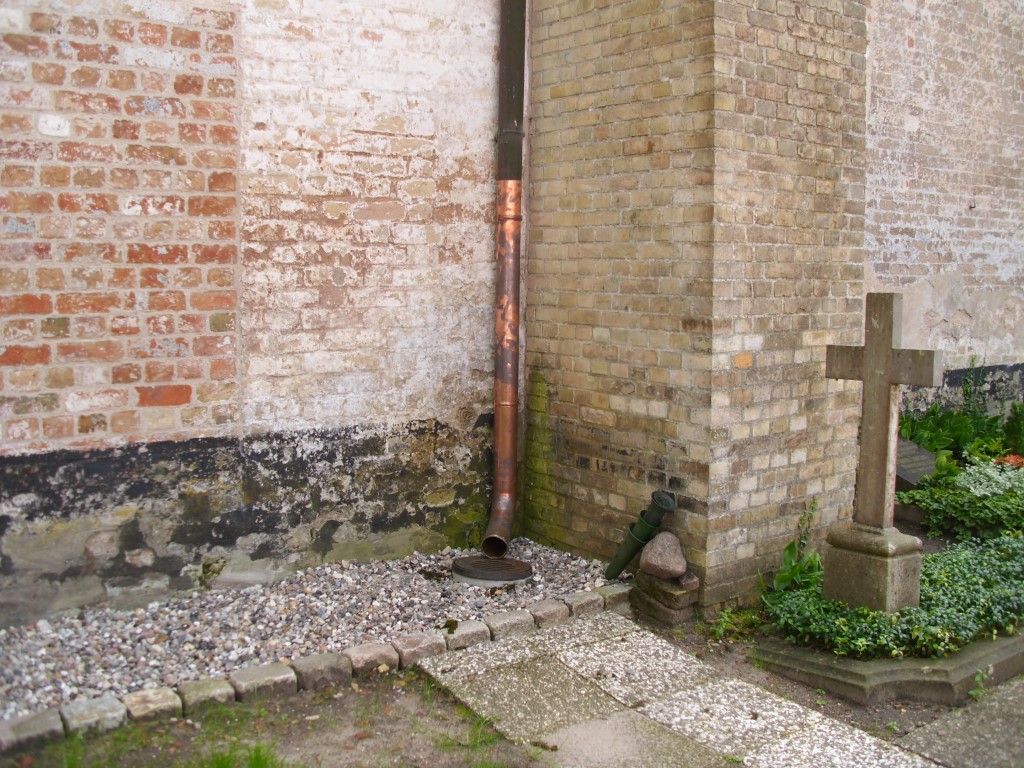 Im Zuge der Sanierung der Klostermauer war uns im hinteren Bereich des Friedhofs aufgefallen, dass das Regenwasser nicht mehr richtig abgeleitet werden konnte und stattdessen einfach unkontrolliert versickerte. Nun ist alles wieder korrekt an die Kanalisation angeschlossen und das Regenwasser vom Dach der Kirche kann durch ein neues Regenrohr abfließen. In diesem Zusammenhang haben wir mit einem Hubsteiger auch die Dachrinnen kontrolliert - alles bestens!