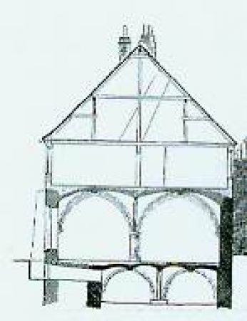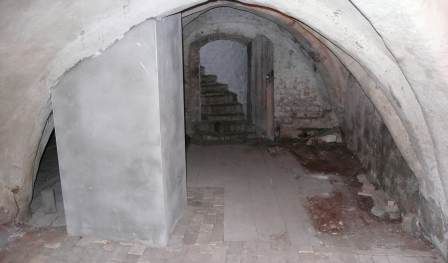 2005 begannen die ersten Sicherungsarbeiten, die sich aus dem Schadensbericht ableiteten. Stützpfeiler fangen nun den Druck ab, der auf dem Kellergewölbe lastet. Auf diese Weise ist die Statik der tragenden Bauteile des Kellers gewährleistet.