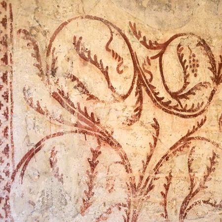 Kalktünchmalereien an der Westseite der Kirche, 15. Jahrhundert.
