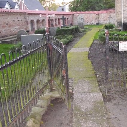 Gegenüber der 2016 von Grund auf sanierten, mittelalterlichen Friedhofsmauer bildete die Mettaleinfriedung des Friedhofs aus dem 19. Jahrhundert einen starken – leider vom Verfall gekennzeichneten – Kontrast.